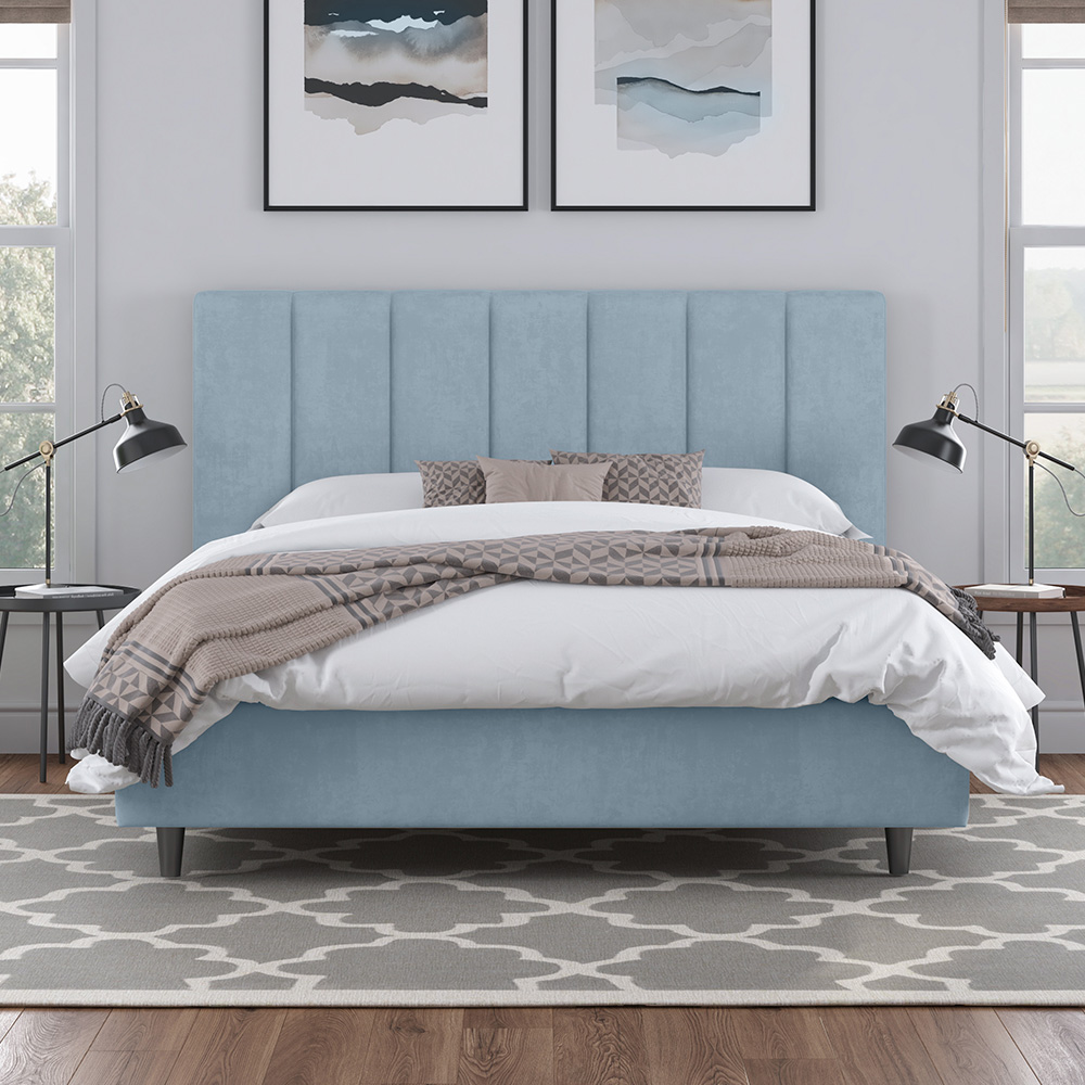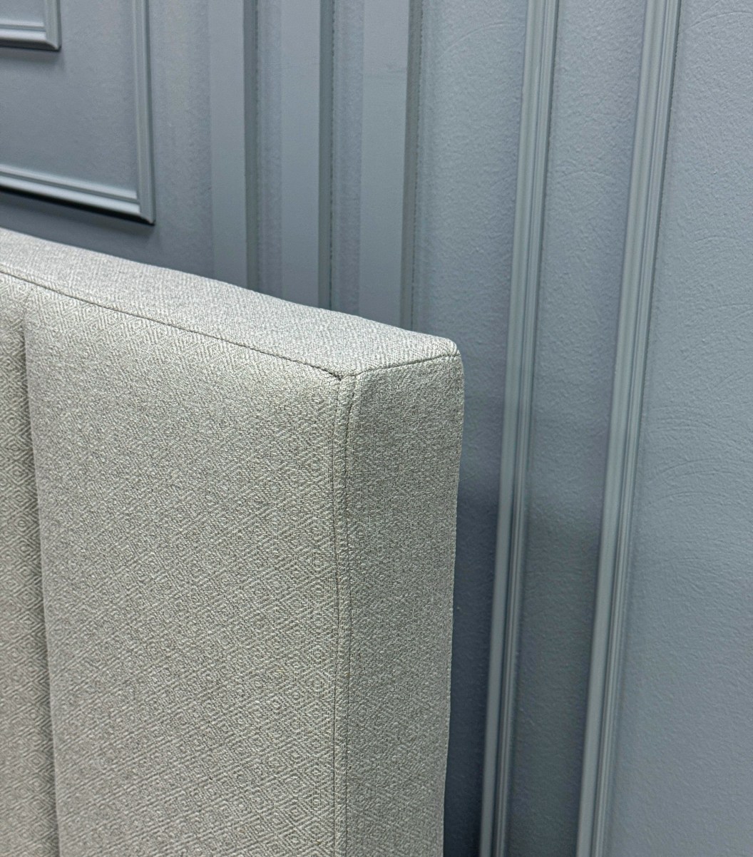 • Изголовье кровати выполнено вертикальными линиями. Данный дизайн актуален и отлично впишется в любой современный интерьер.